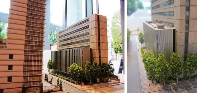 7月15日(金)、本館E棟1階エントランスホールに設置されている千代田キャンパス全体模型に、5月に竣工したH棟の模型が新たに加わりました。